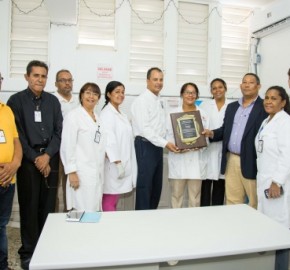 En el acto el ingeniero Bari Domínguez, gerente de los parques eólicos Los Cocos y Larimar de EGE Haina, hizo formal entrega de la donación y recibió en representación de la empresa una placa de reconocimiento por los aportes realizados al centro médico de manos del doctor Héctor Polanco, director del hospital y del doctor Luis Emilio Pérez González, Director Regional Región IV del Ministerio de Salud Pública, con asiento en Barahona.