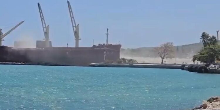 Polvo blanco que emana de embarque de materiales de construcción en puerto de Barahona es «letal» para la salud